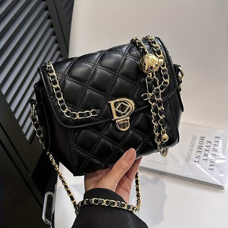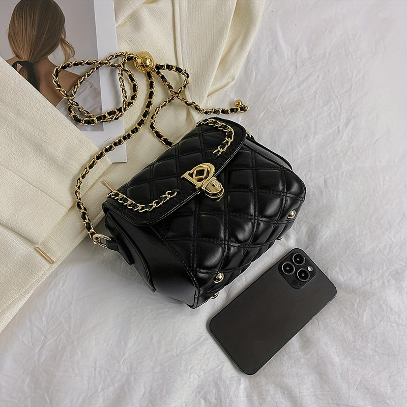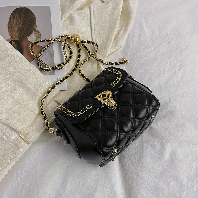 アーガイル キルティング チェーン クロスボディバッグ|トレンド ミニ ショルダーバッグ|レディース PUレザー フラップ パース