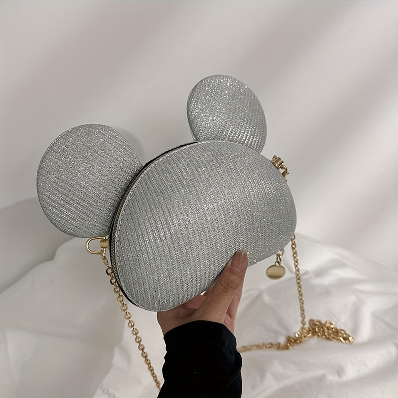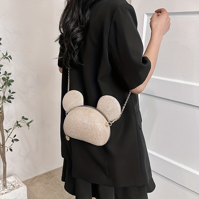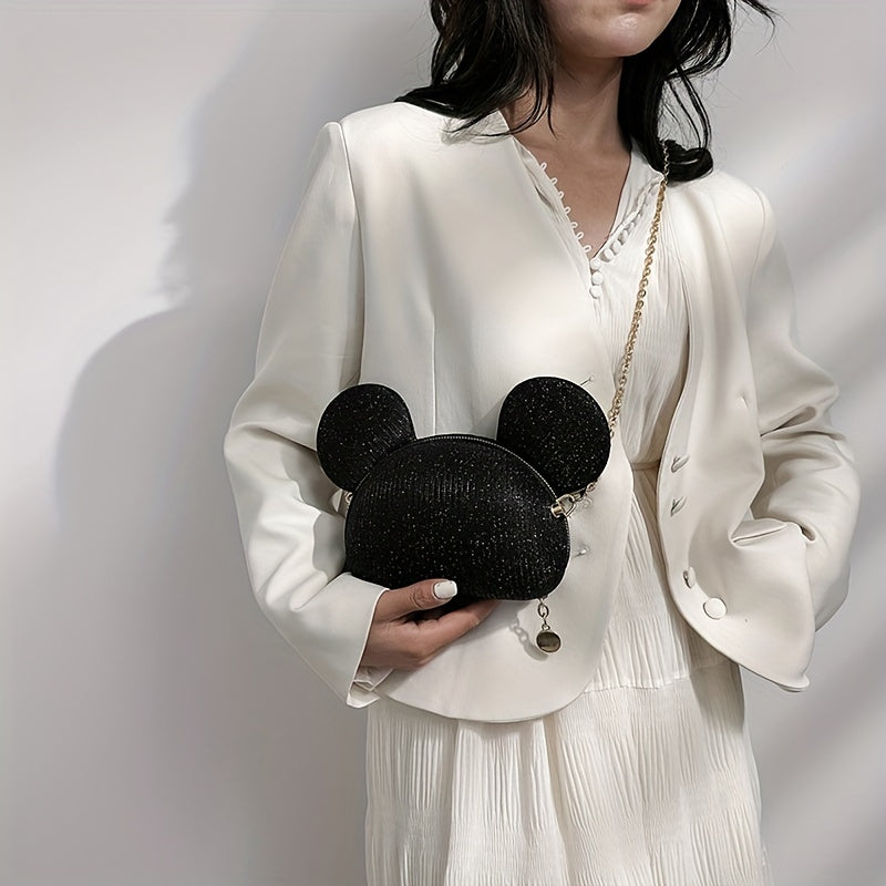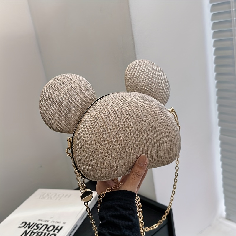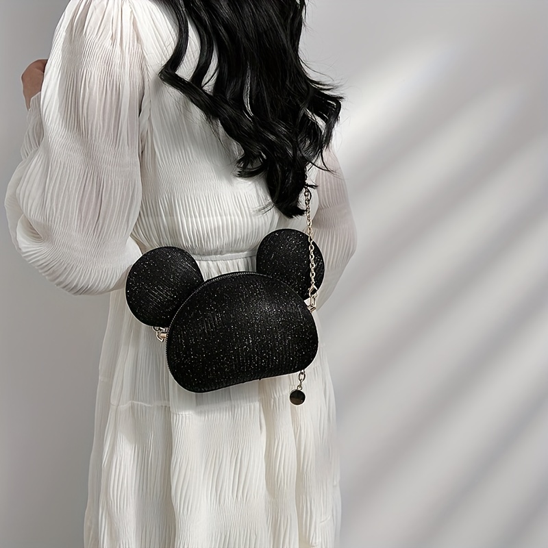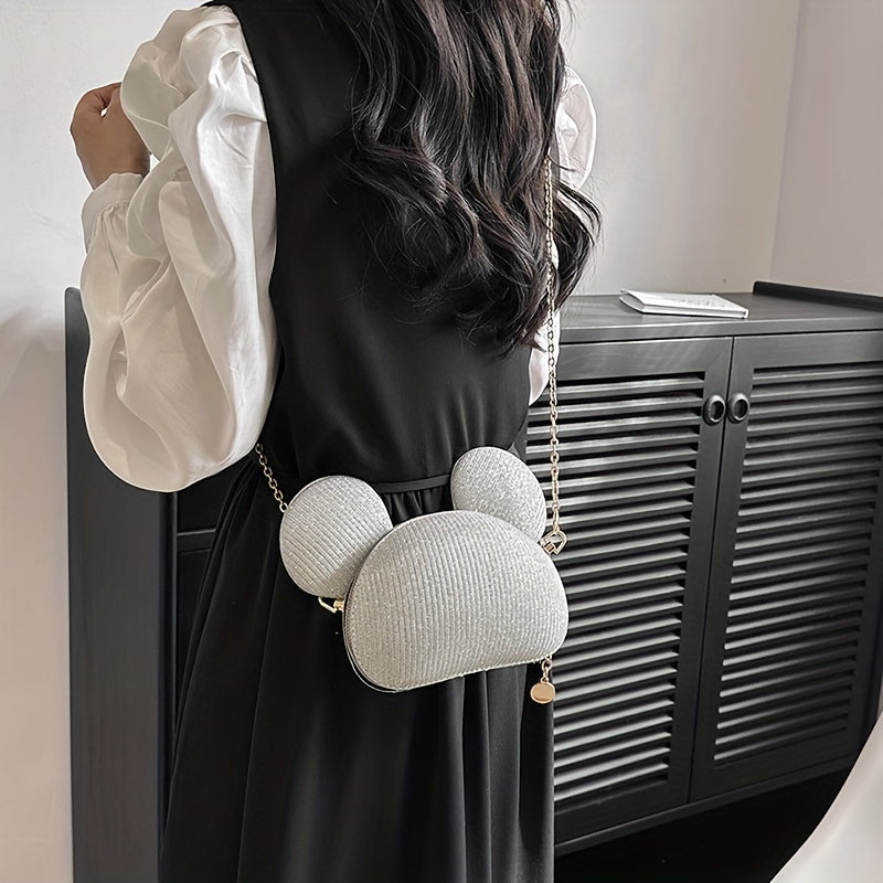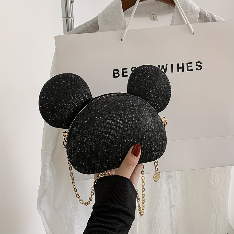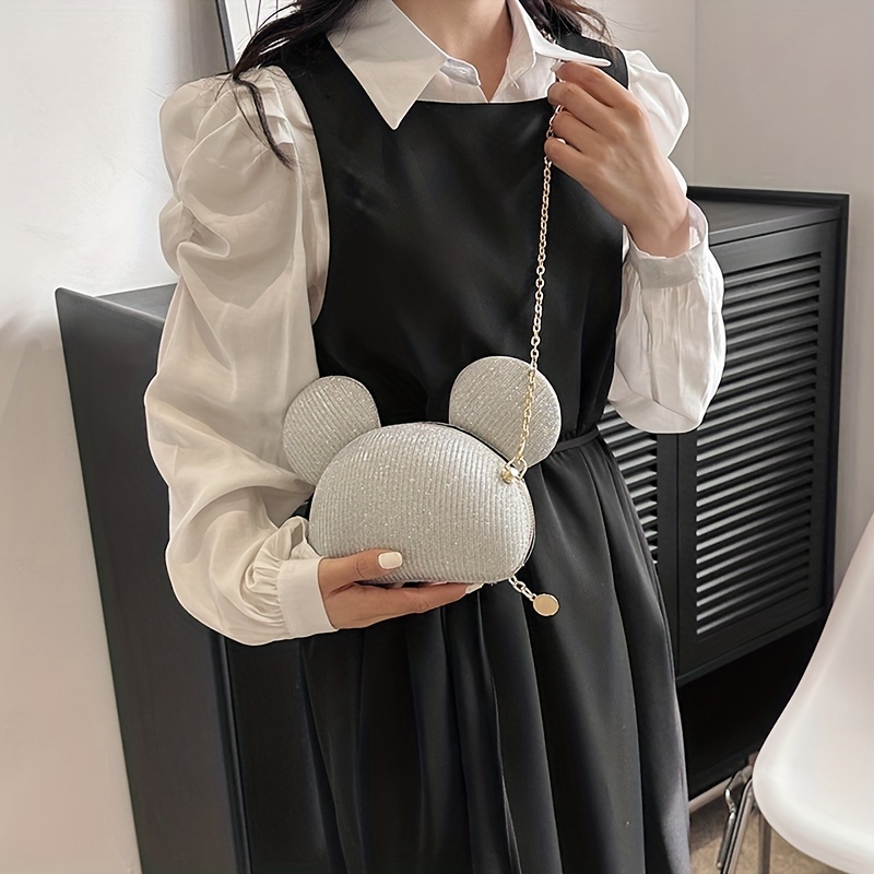 カートゥーン ベア スパンコール バッグ|トレンド チェーン クロスボディバッグ|レディース リップ収納用 ミニ ノベルティ パース