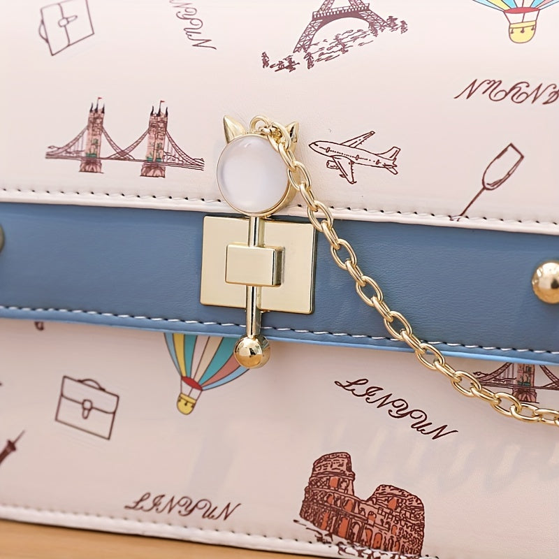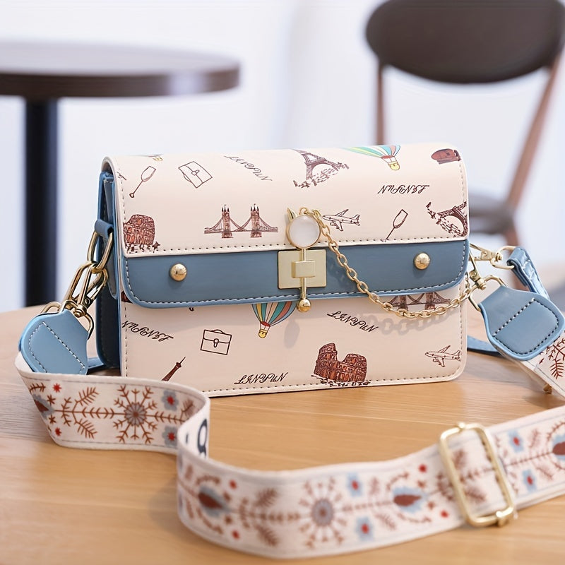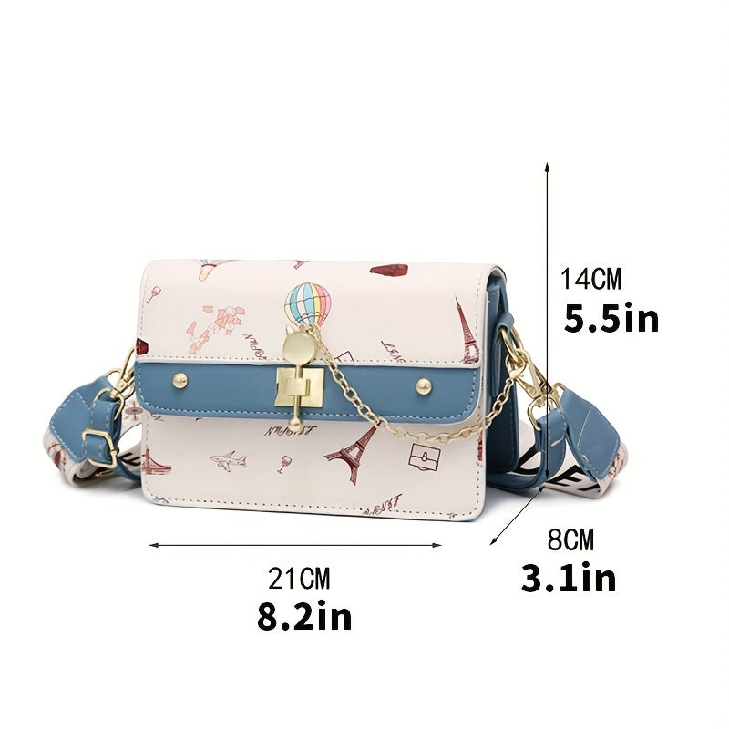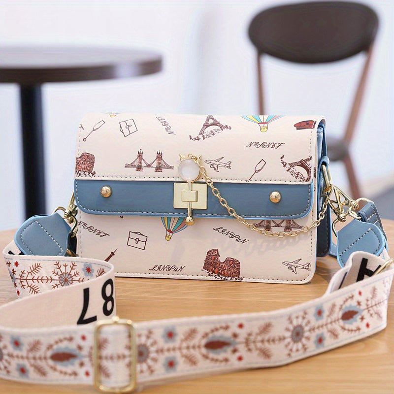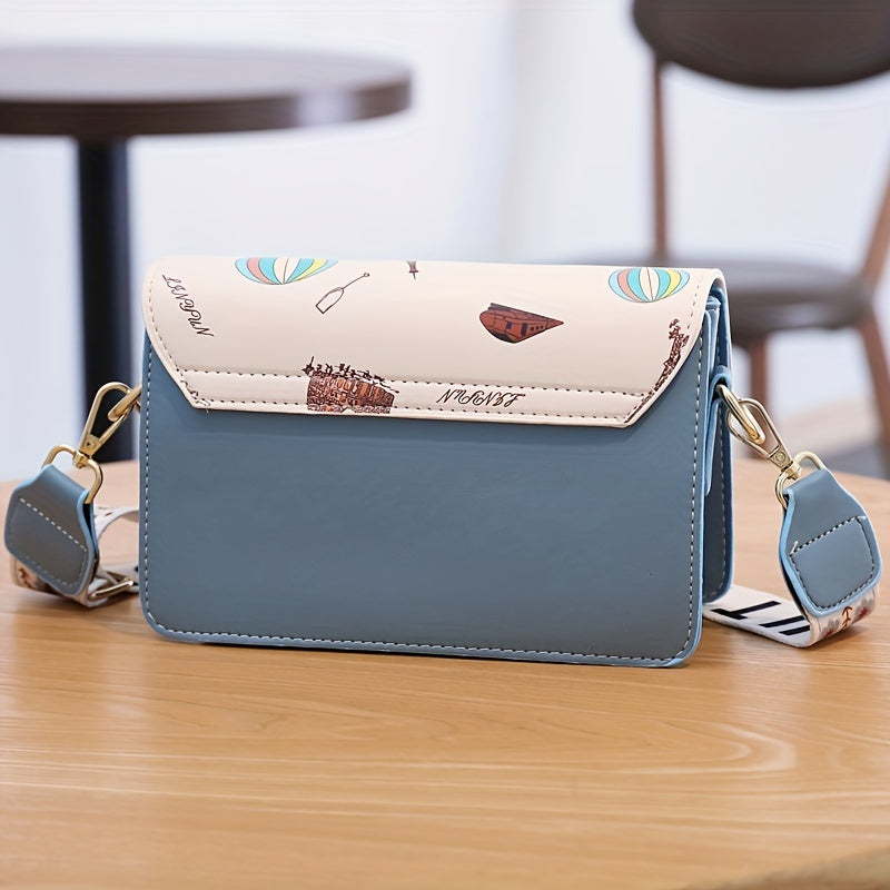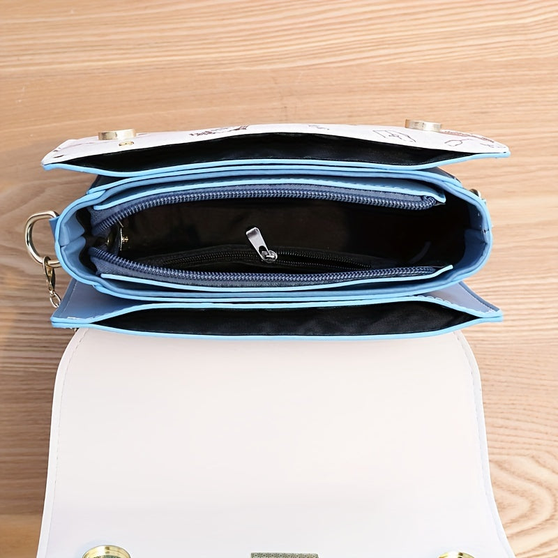 カートゥーン柄 スクエア ショルダーバッグ|スタイリッシュ 配色デザイン バッグ|オールマッチ クロスボディバッグ