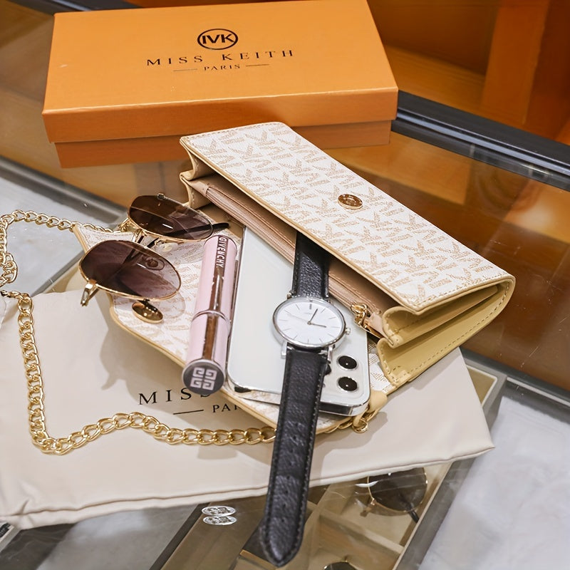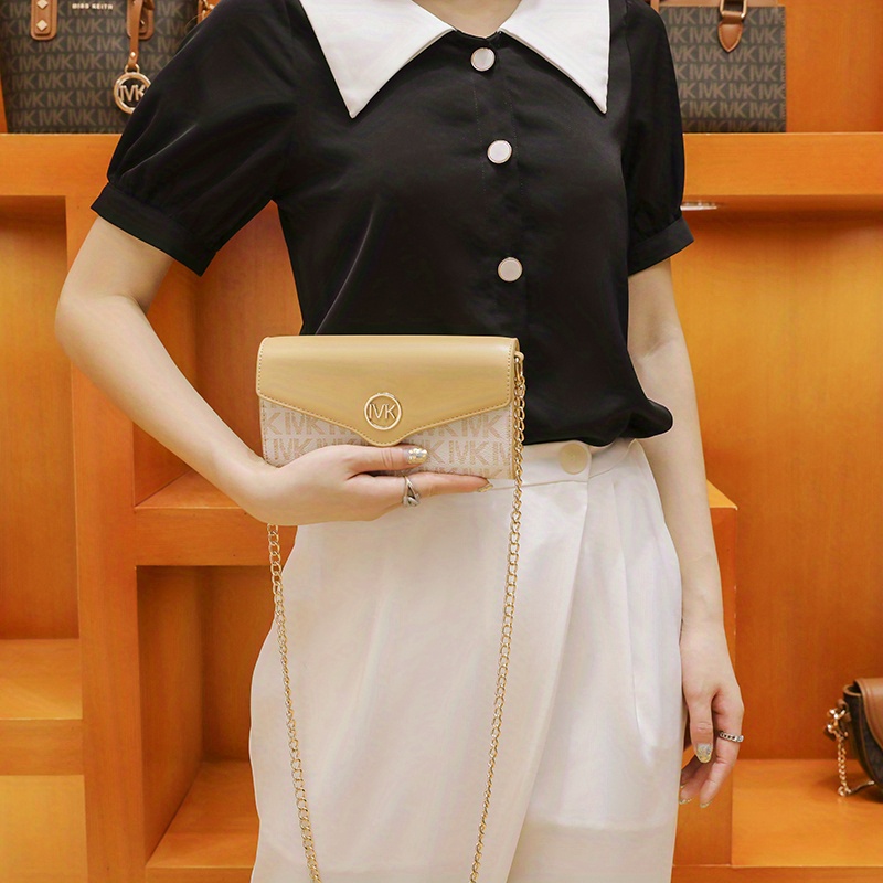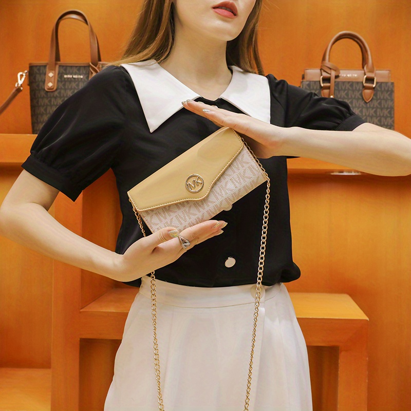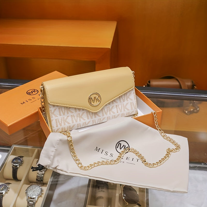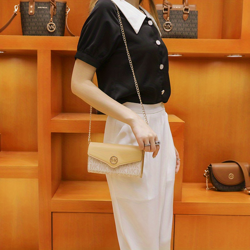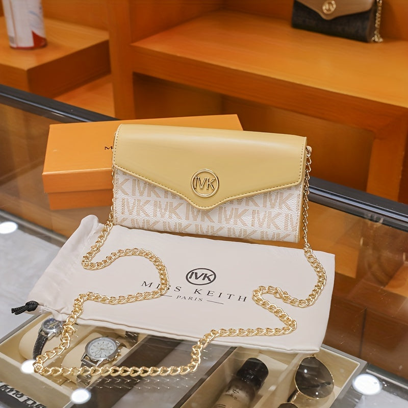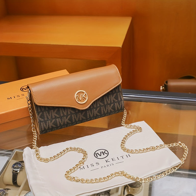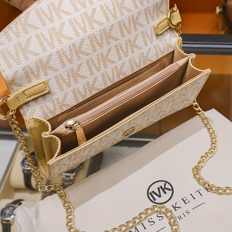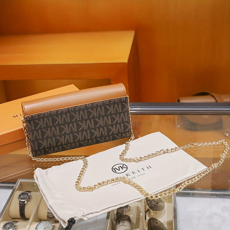 クラシック レターパターン パース|フラップ クロスボディバッグ|ヴィンテージ チェーンバッグ|レディース ショルダーバッグ
