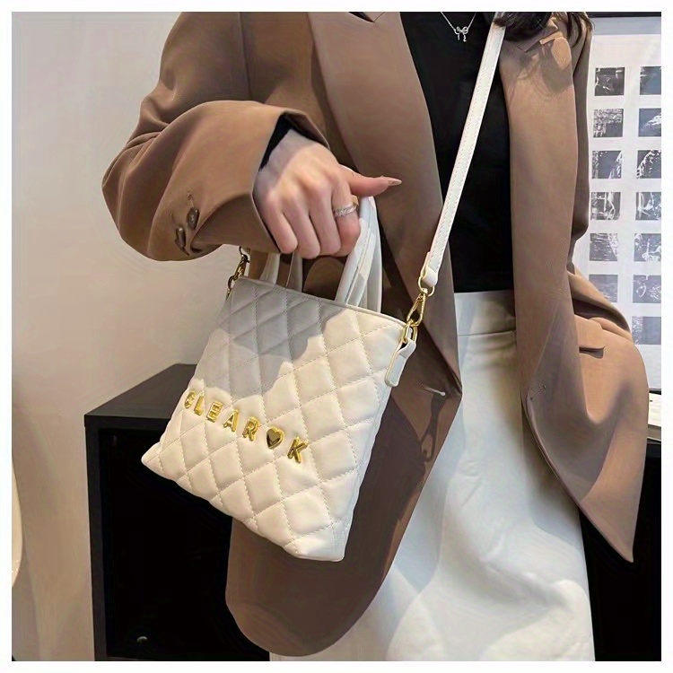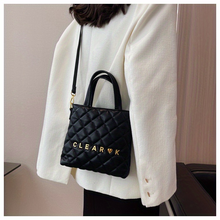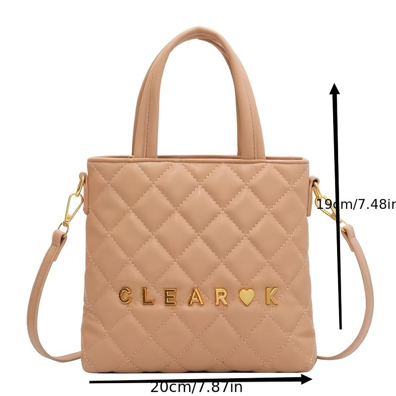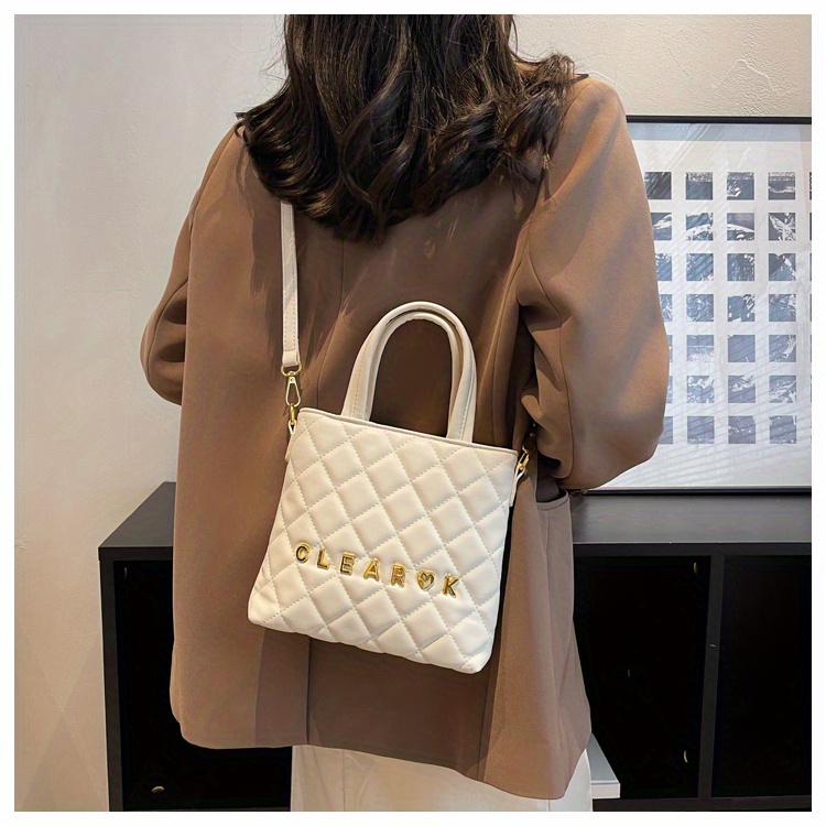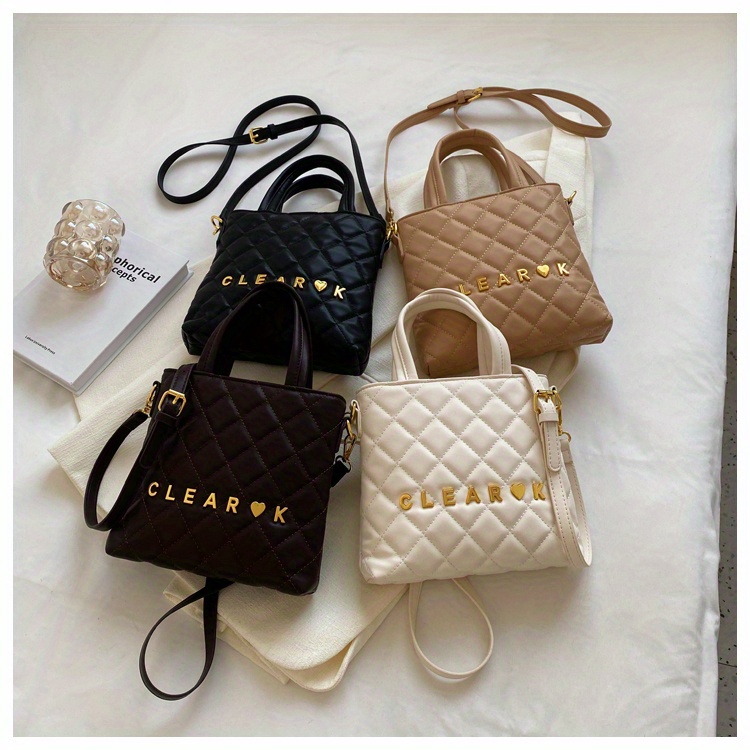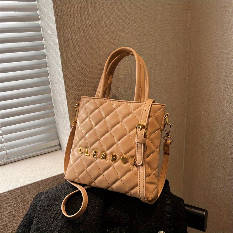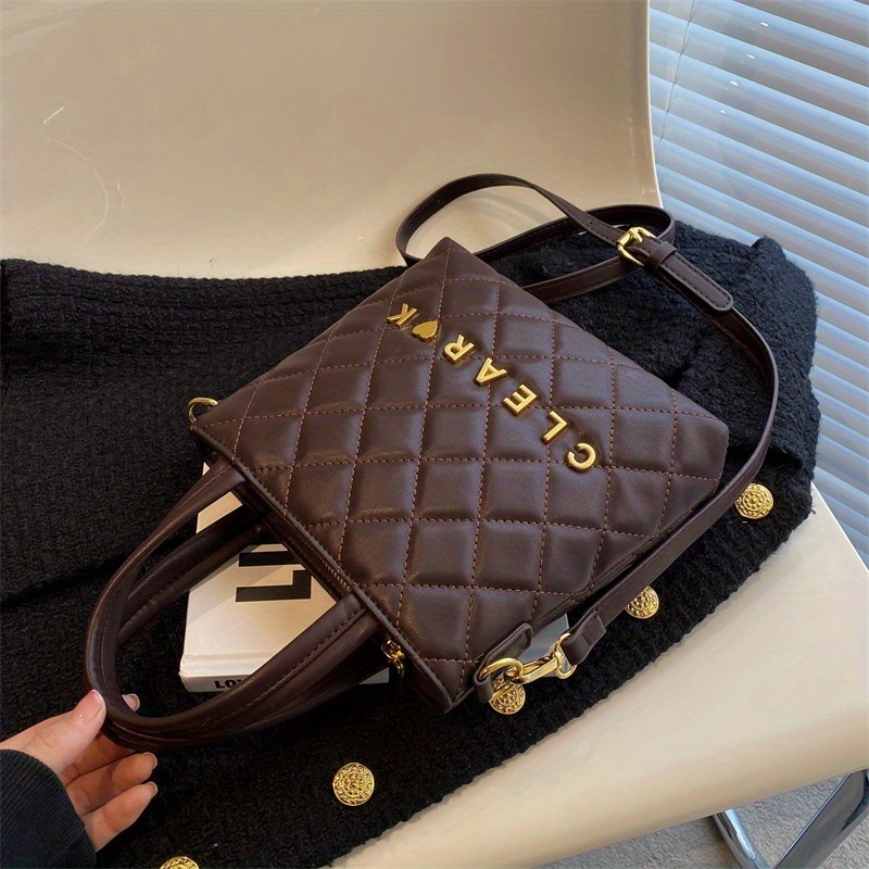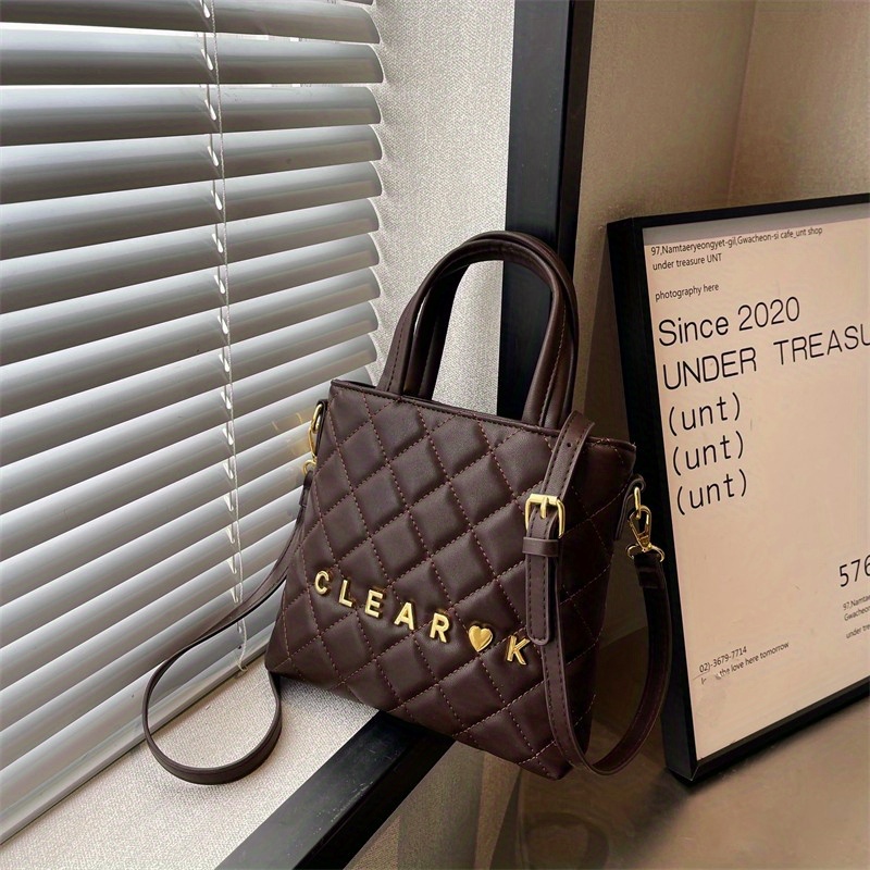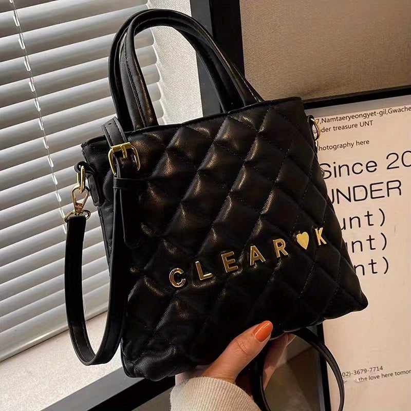 クラシック キルティング ショルダーバッグ|メタルレター装飾 クロスボディバッグ|レディース スタイリッシュ スクエア サッチェルバッグ