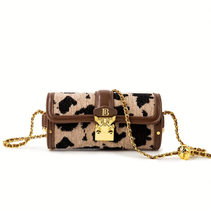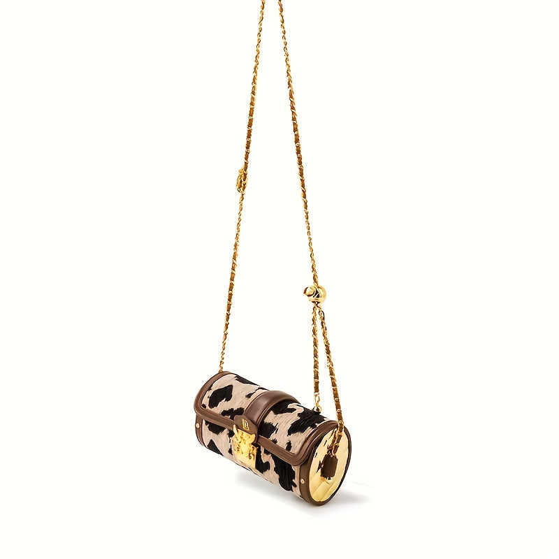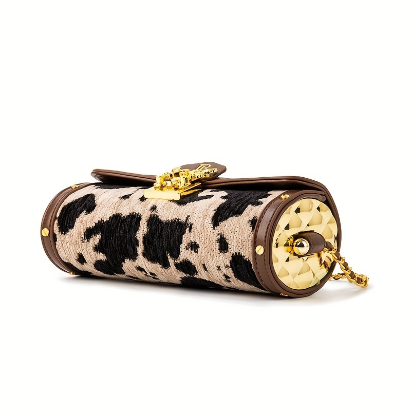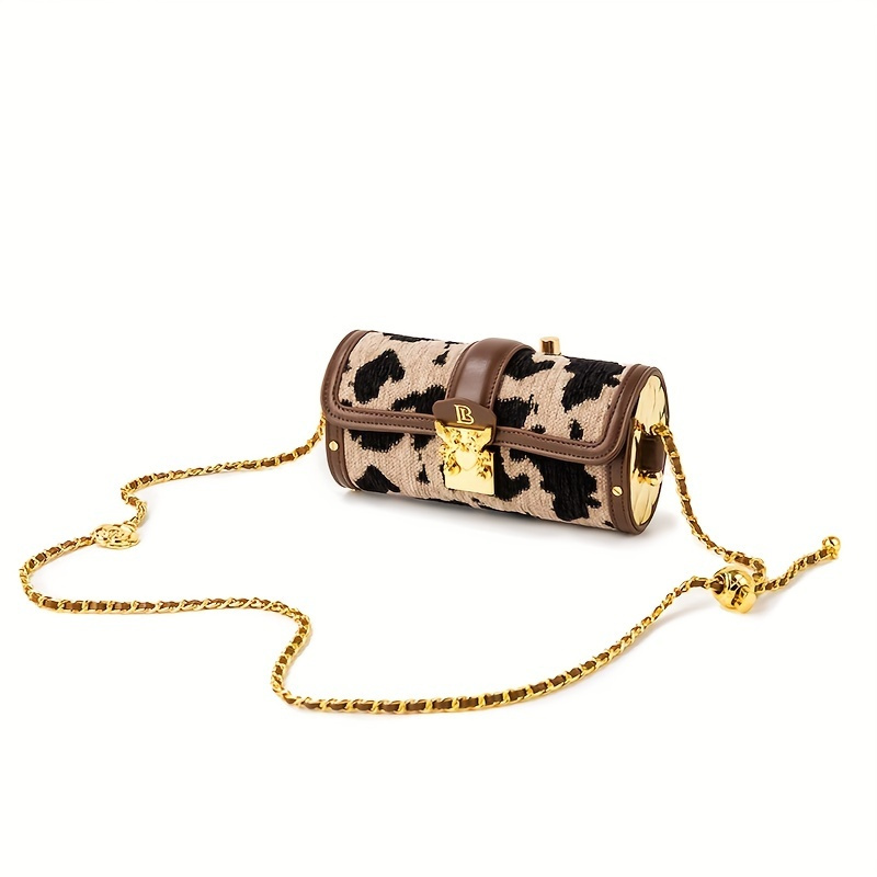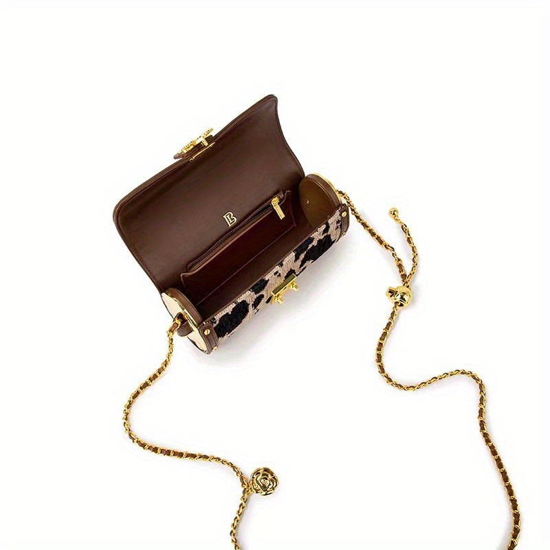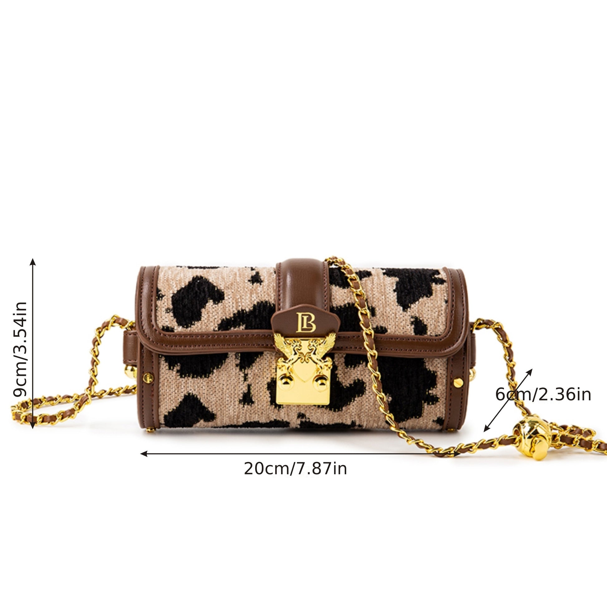 レディース シリンダー型 クロスボディバッグ|チェーン ショルダーバッグ|ツイード フラップ ハンドバッグ