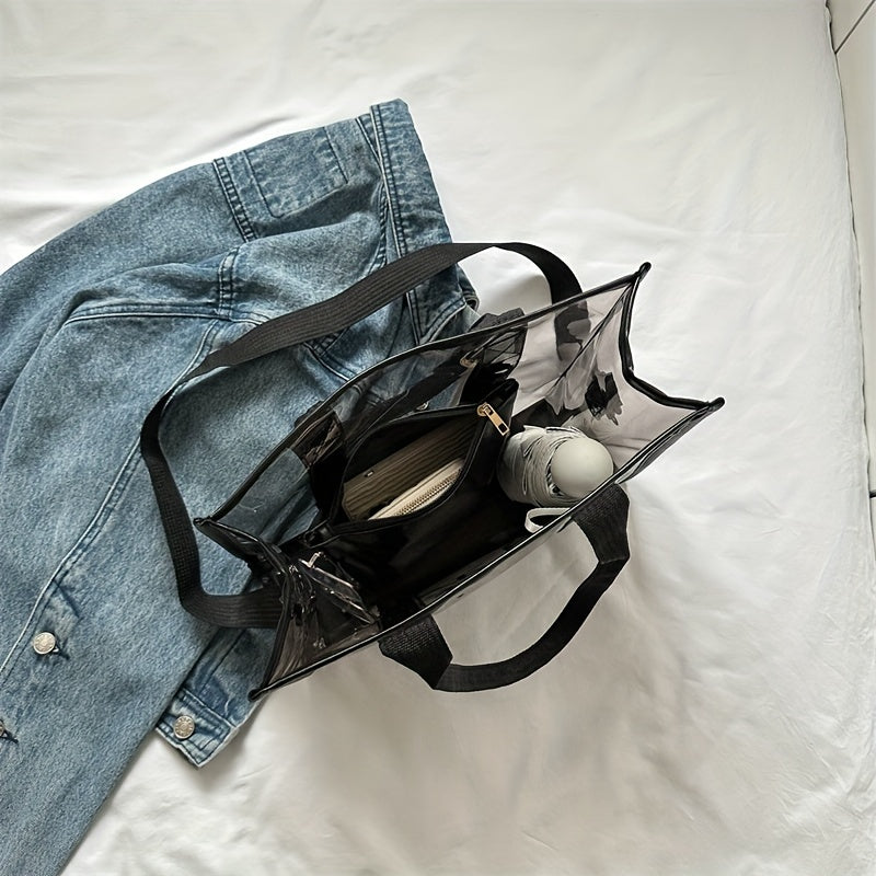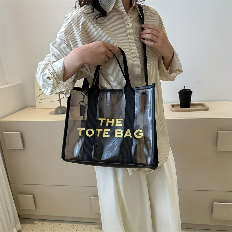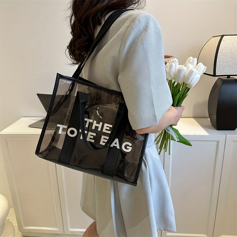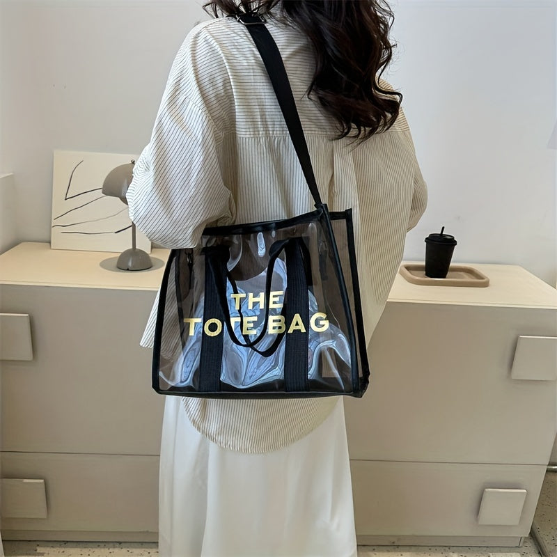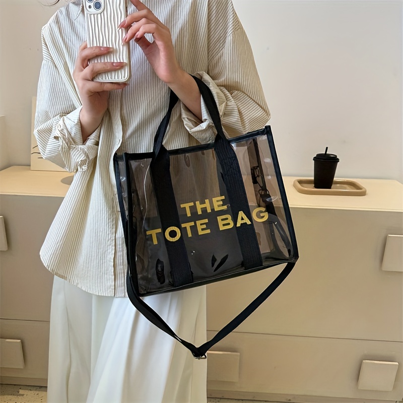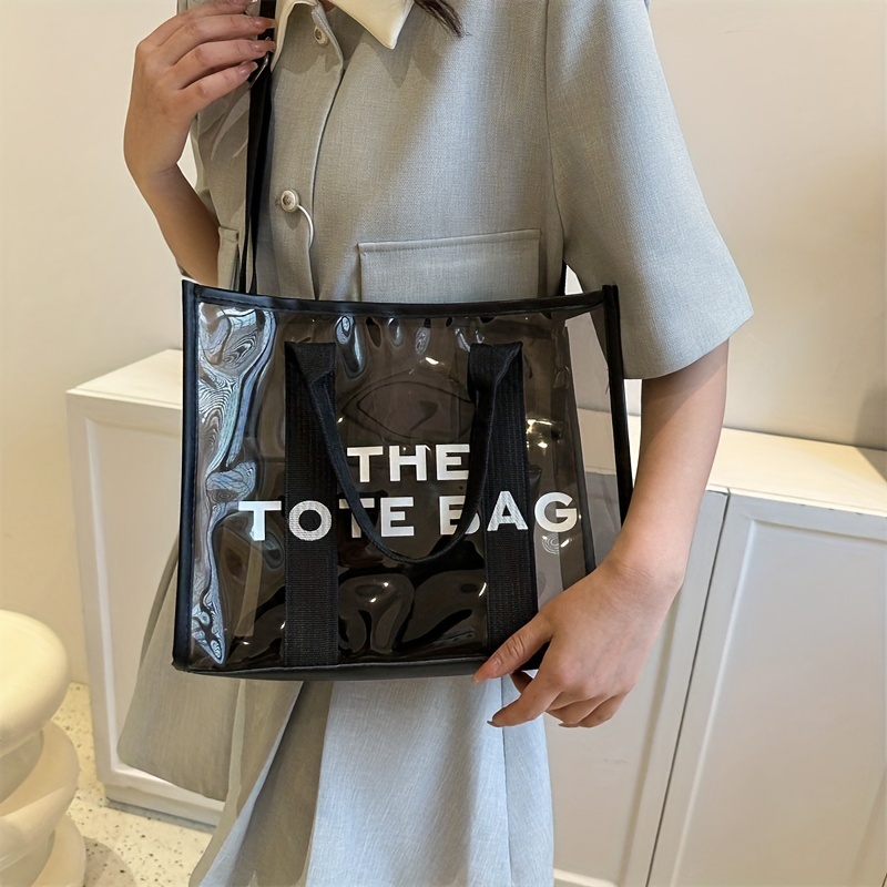 レターパターン トートショルダーバッグ|クリア サッチェルバッグ|オールマッチ クロスボディバッグ