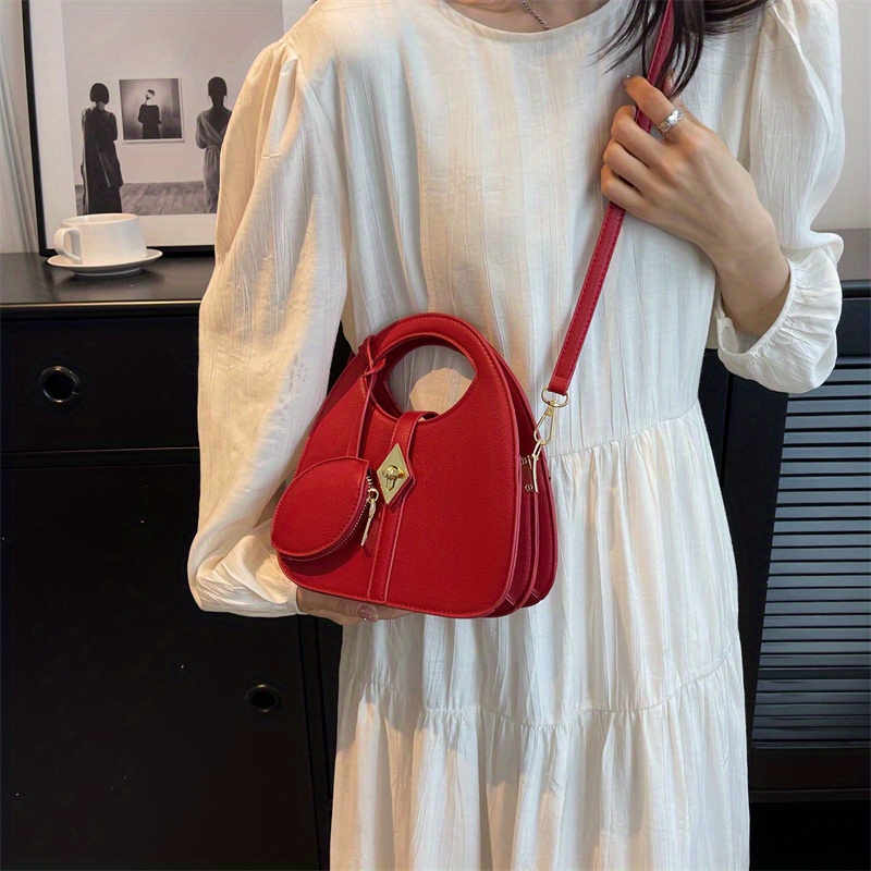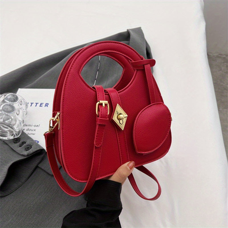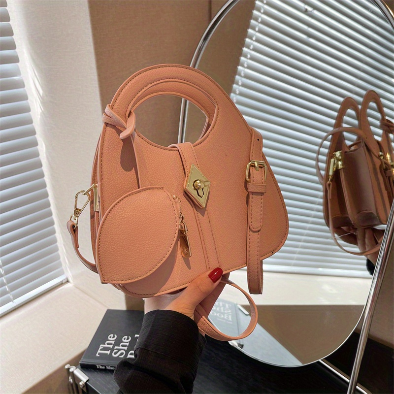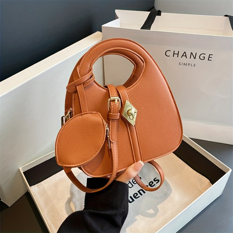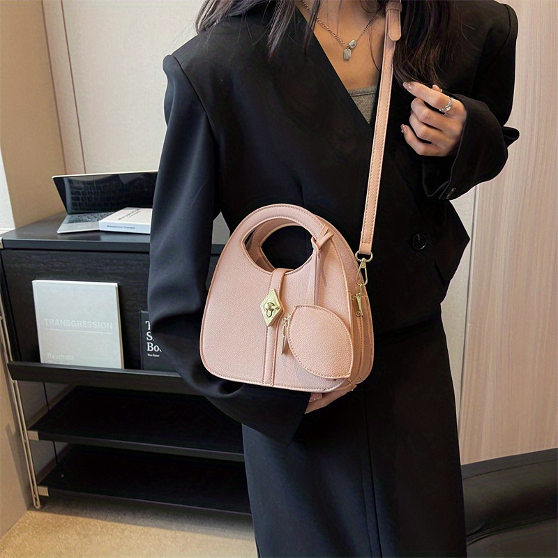 ニッチデザイン クロスボディバッグ|レディース ターンロック ハンドバッグ|コインケース付き ファッション ショルダーバッグ