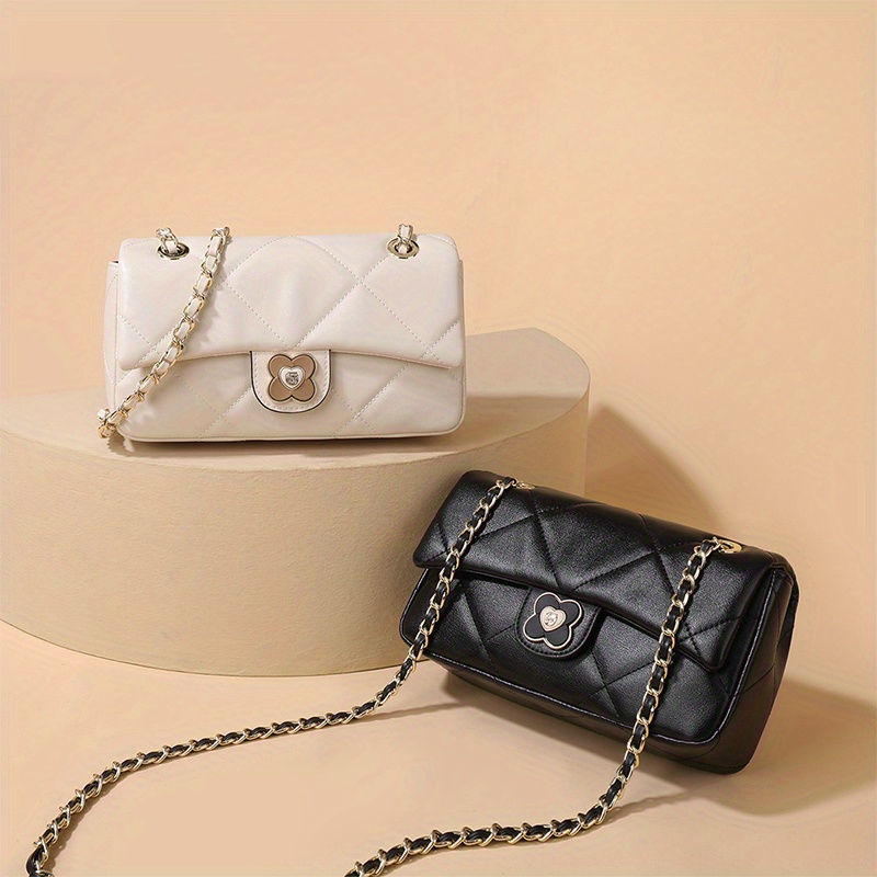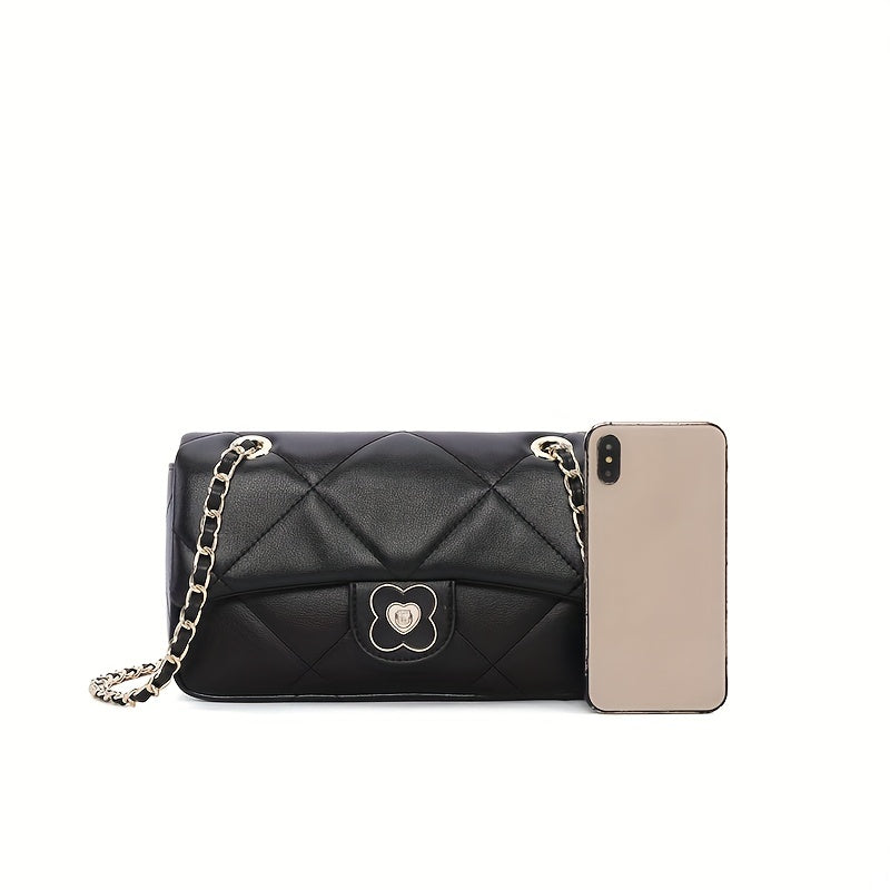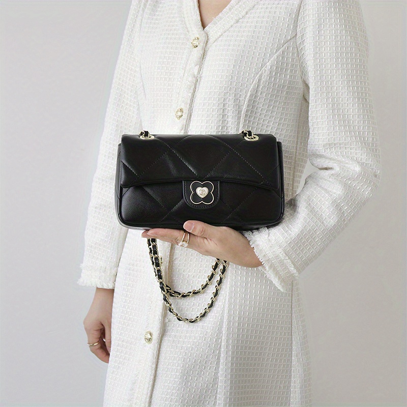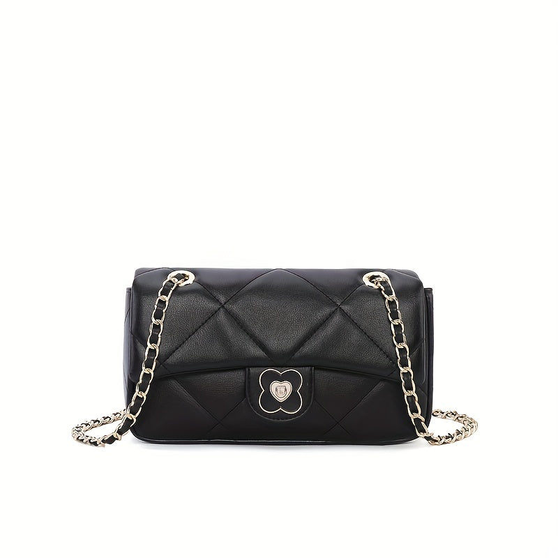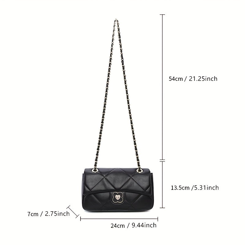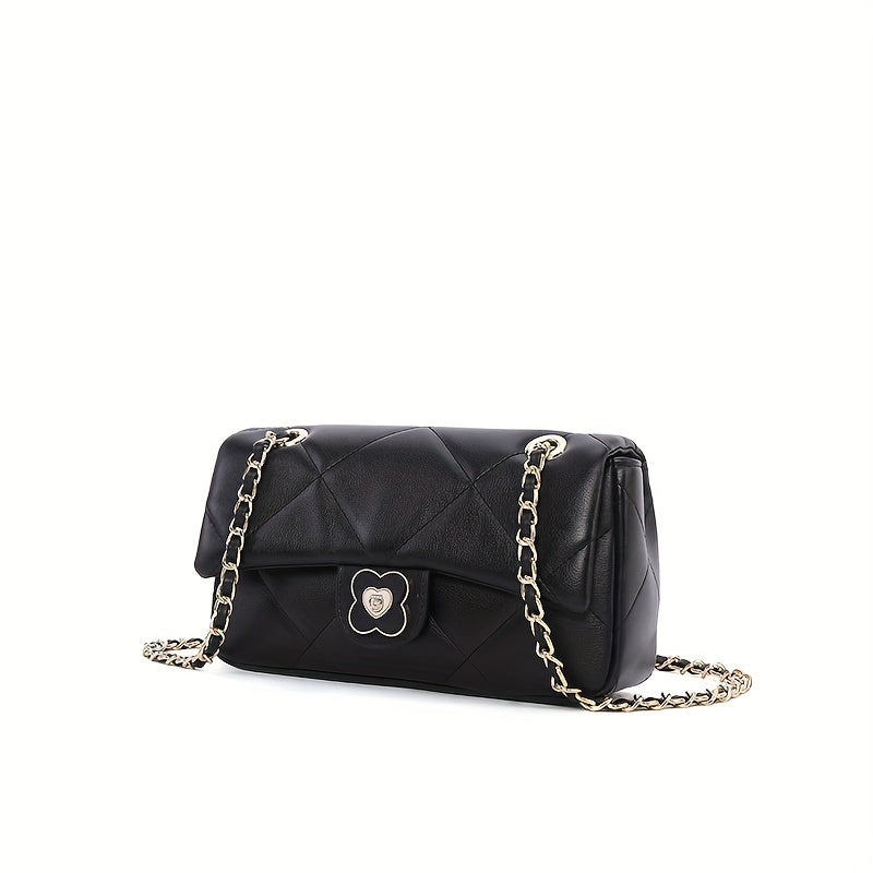 キルティング チェーン クロスボディバッグ|メタルフラワー装飾 フラップ パース|レディース レザー スクエア ショルダーバッグ