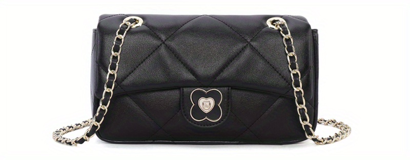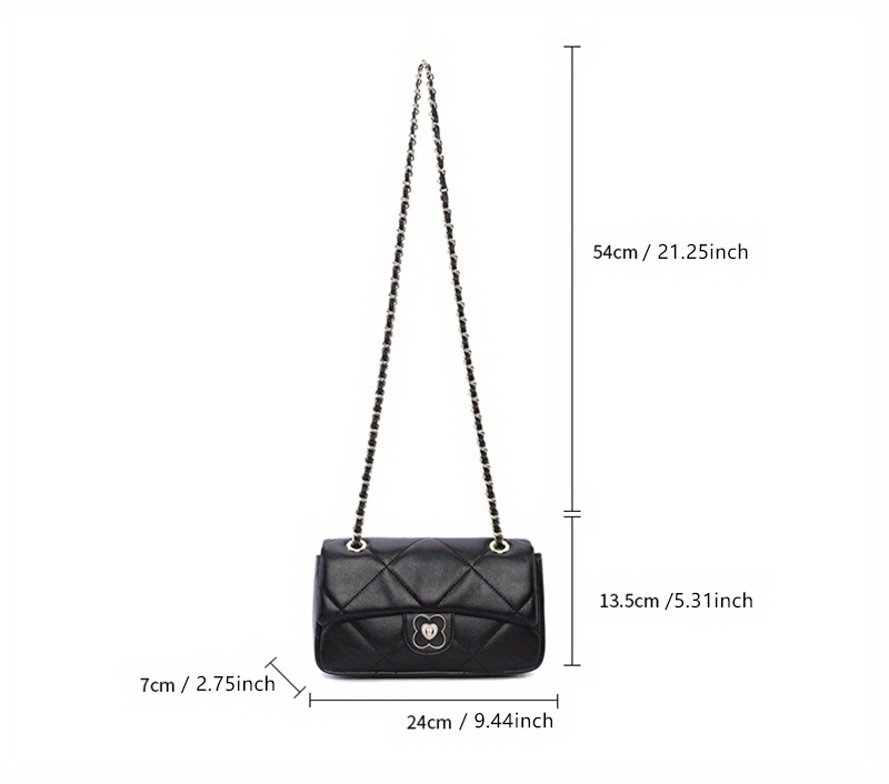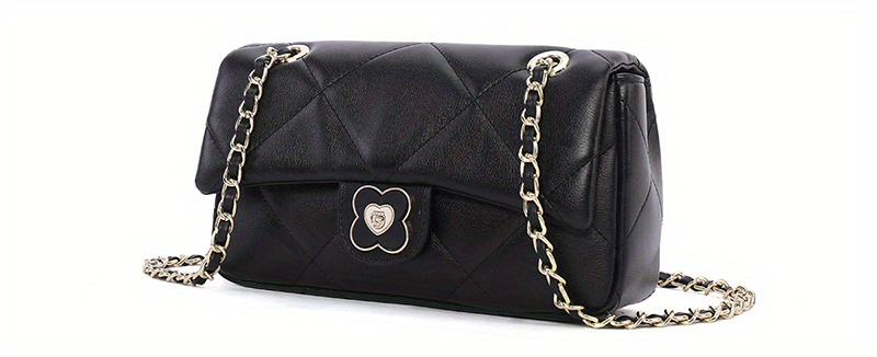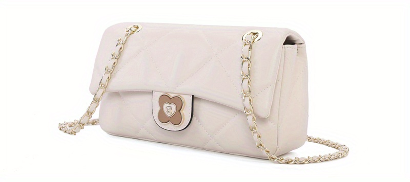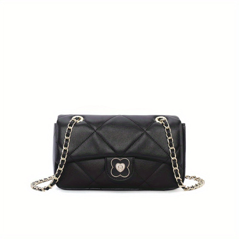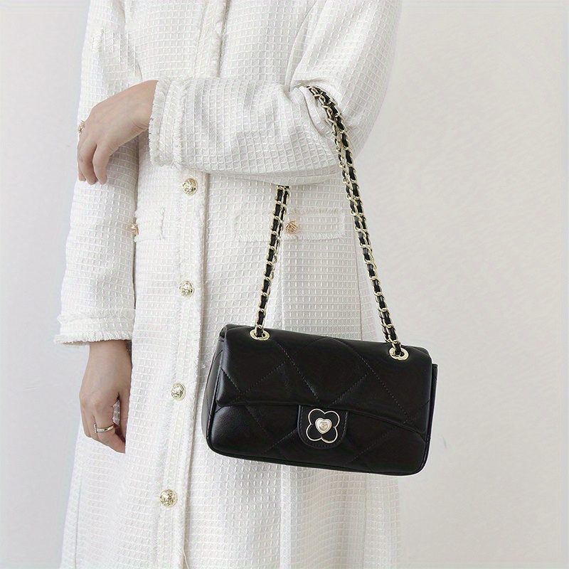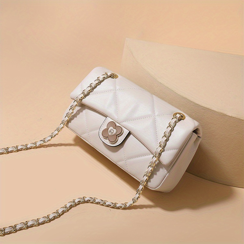 キルティング チェーン クロスボディバッグ|メタルフラワー装飾 フラップ パース|レディース レザー スクエア ショルダーバッグ