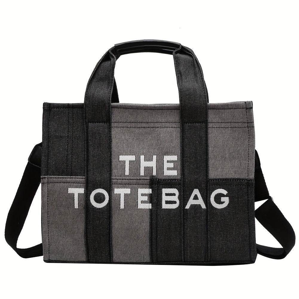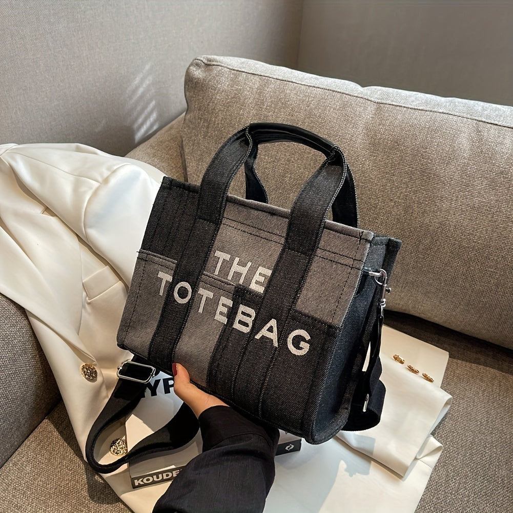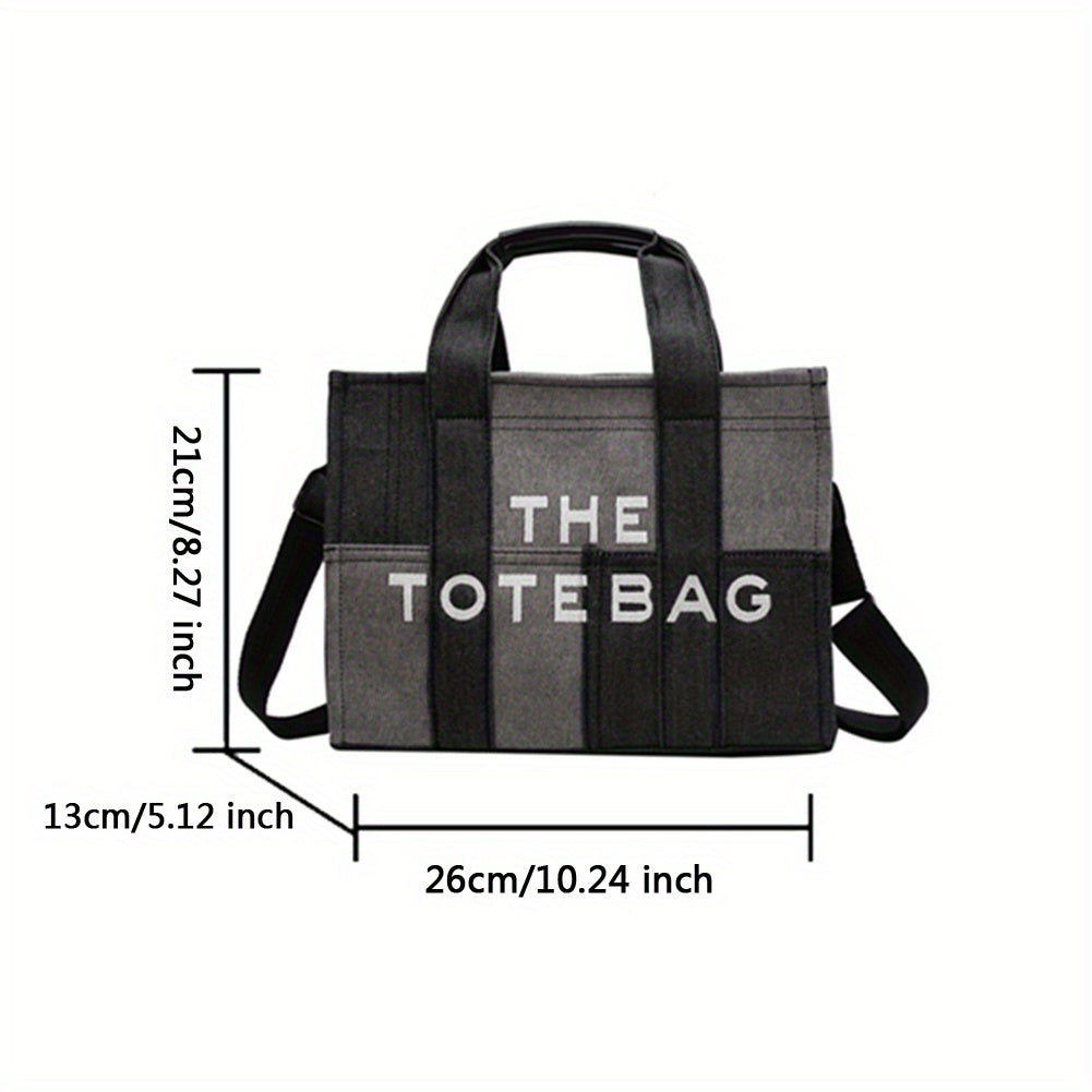 ステッチ デニム トートバッグ|ヴィンテージ風 クロスボディバッグ|通勤・旅行・通学用 レディース トップハンドルバッグ