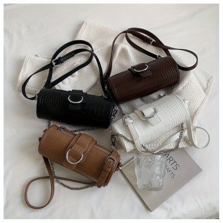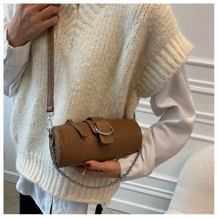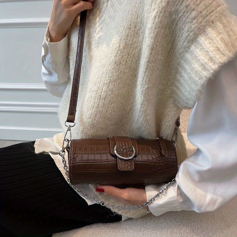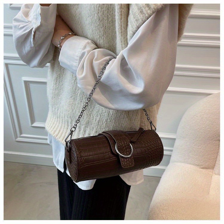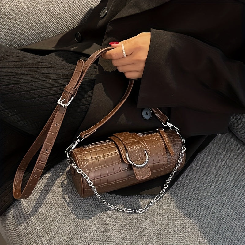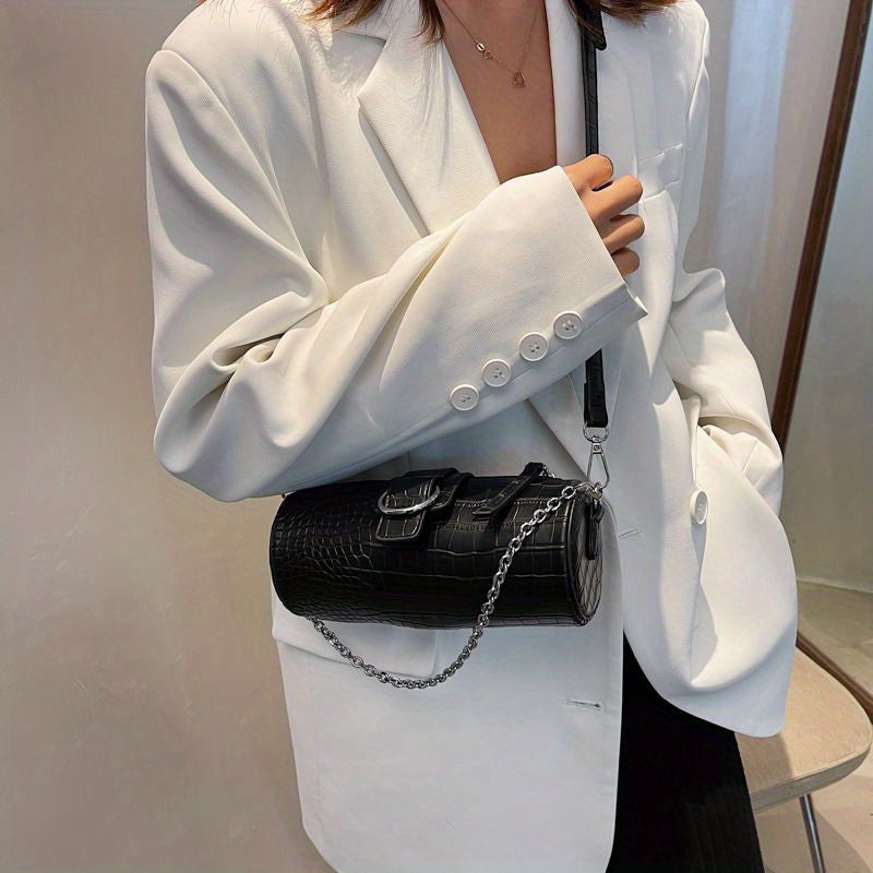 クロコ型押し バレル型 ショルダーバッグ|レディース チェーン クロスボディバッグ|シンプル パース