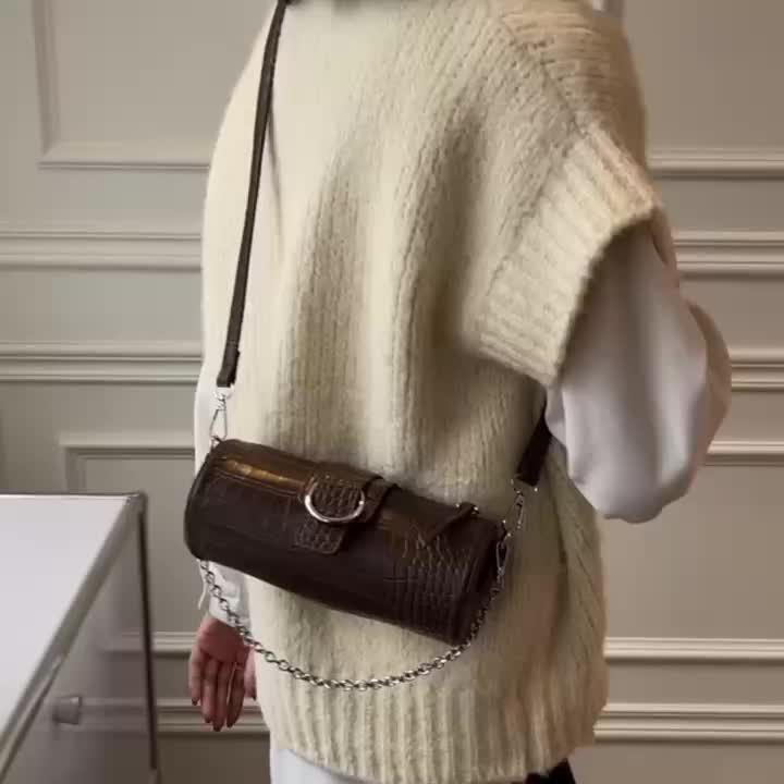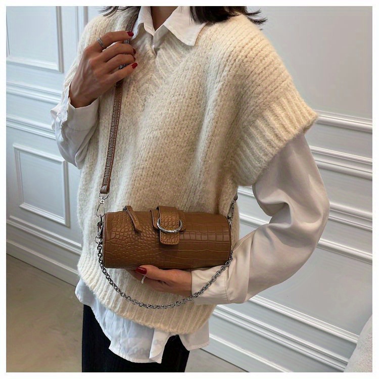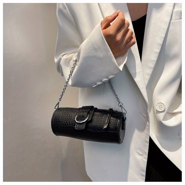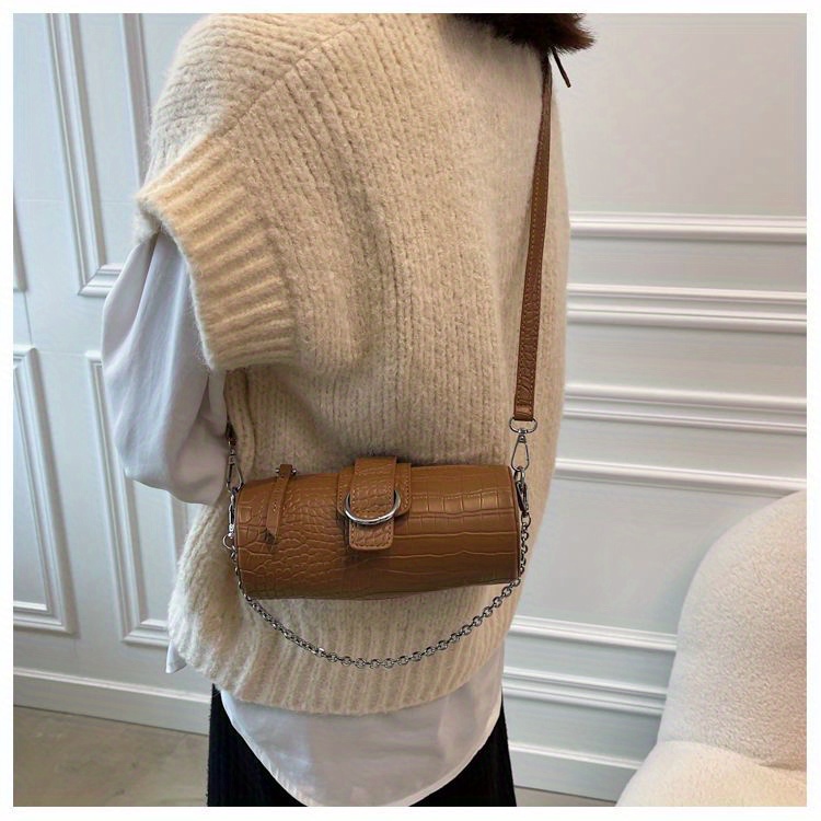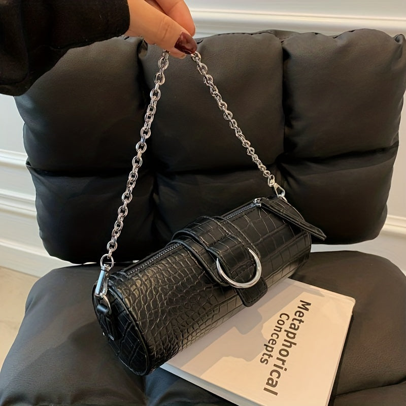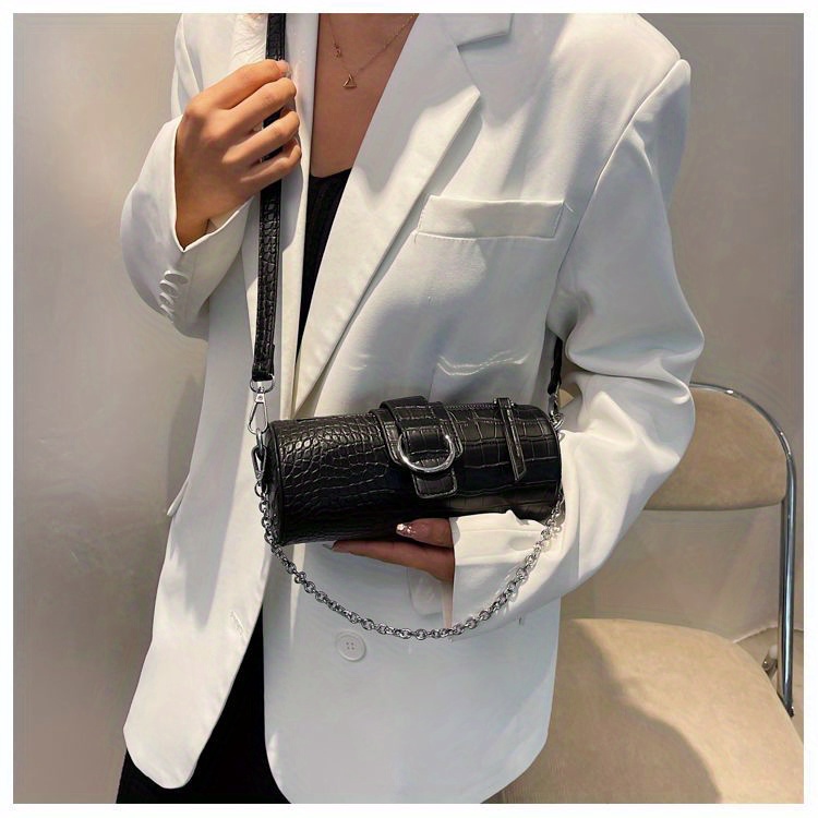 クロコ型押し バレル型 ショルダーバッグ|レディース チェーン クロスボディバッグ|シンプル パース