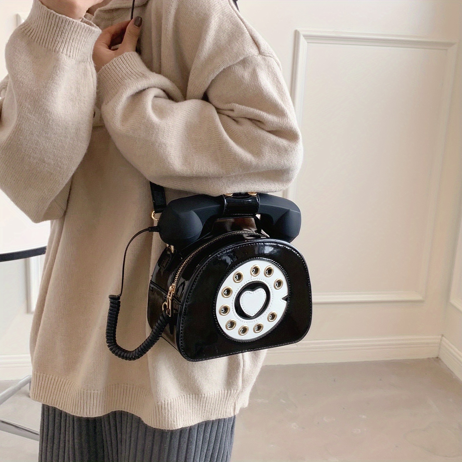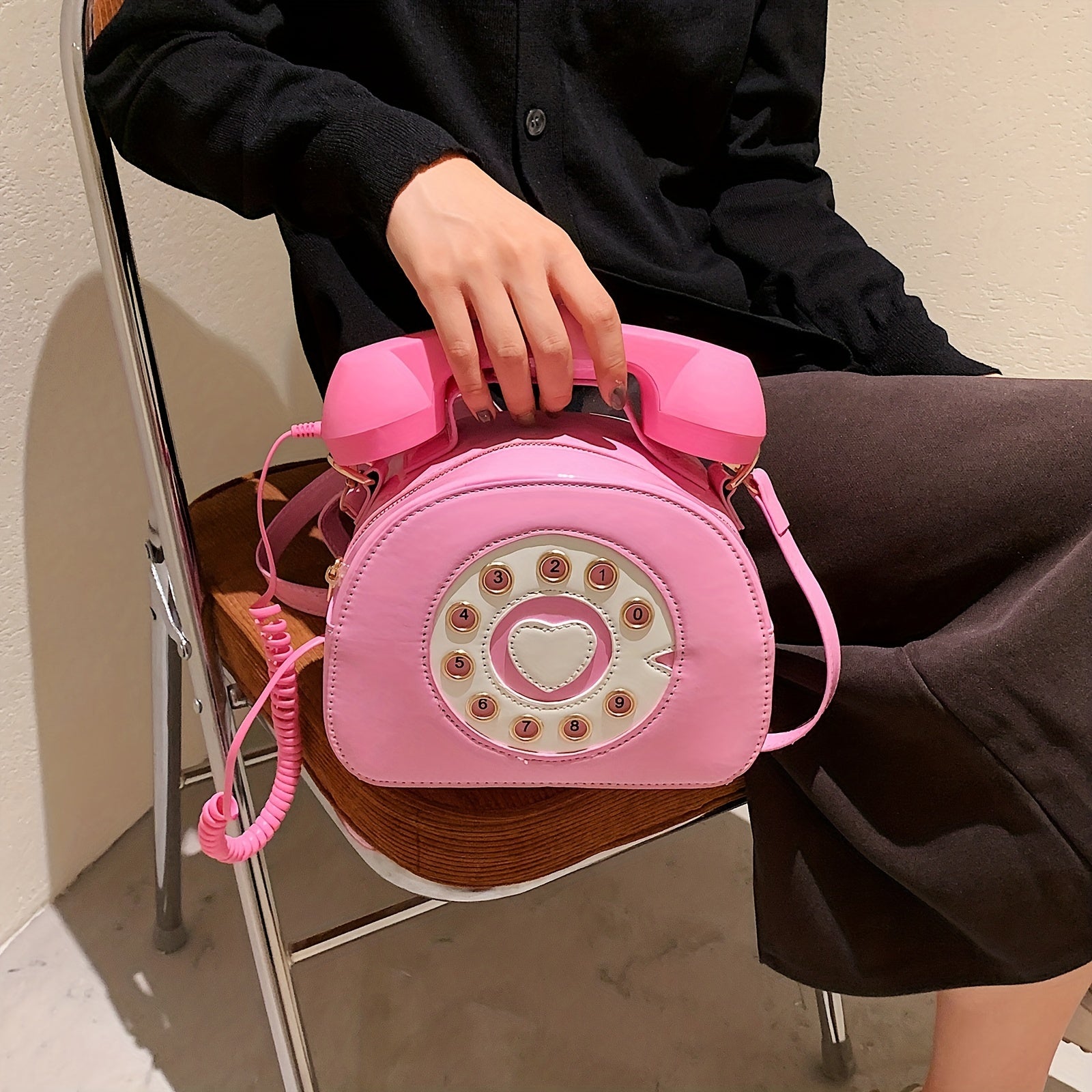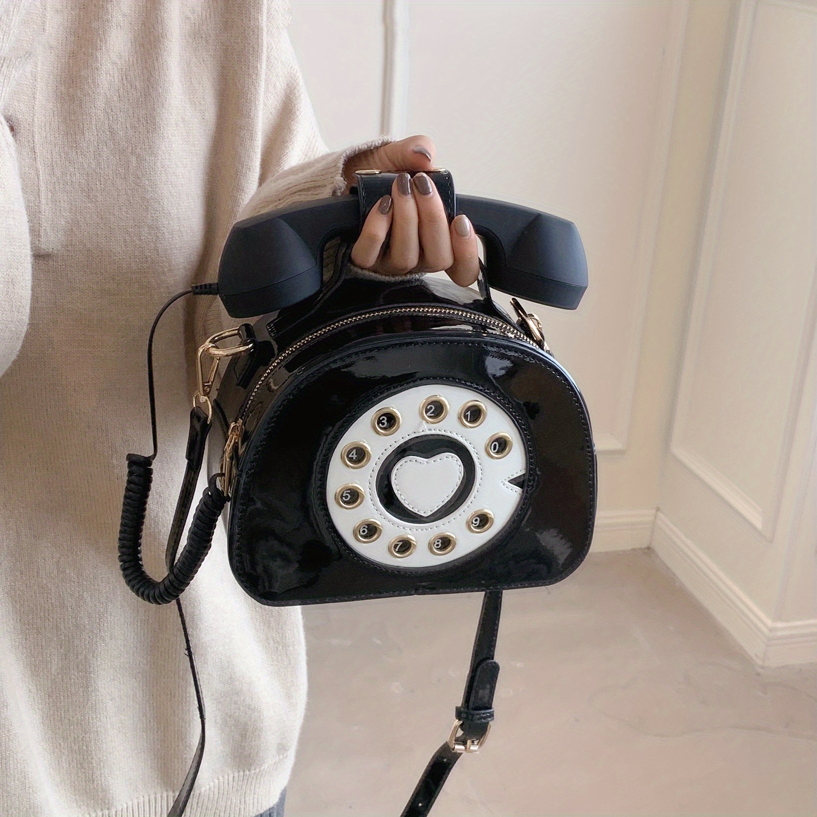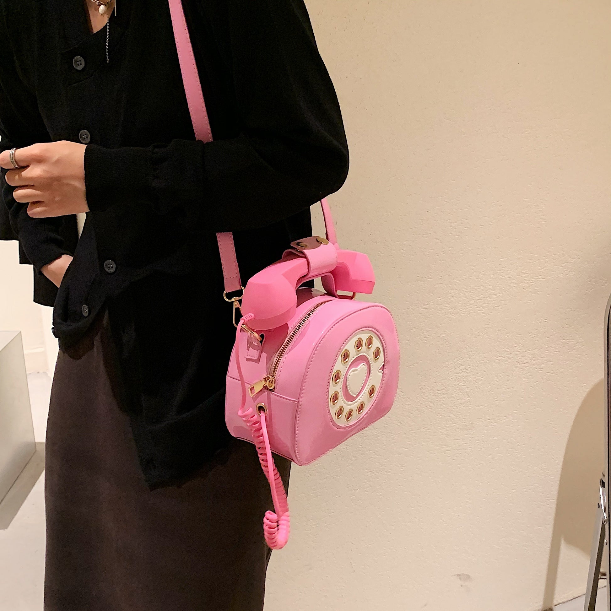 電話型 ショルダーバッグ|クリエイティブ PUレザー クロスボディバッグ|個性派 ファスナー付き レディースバッグ