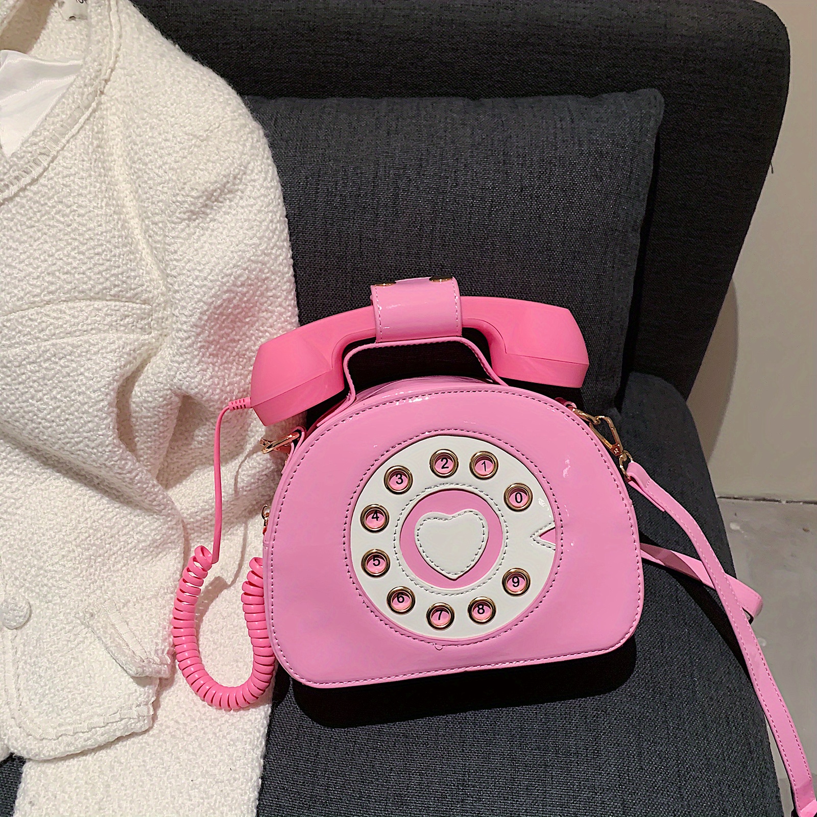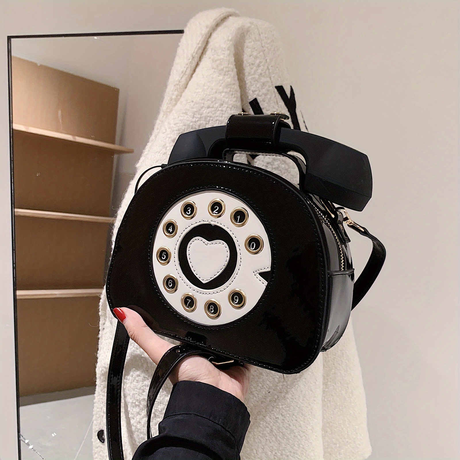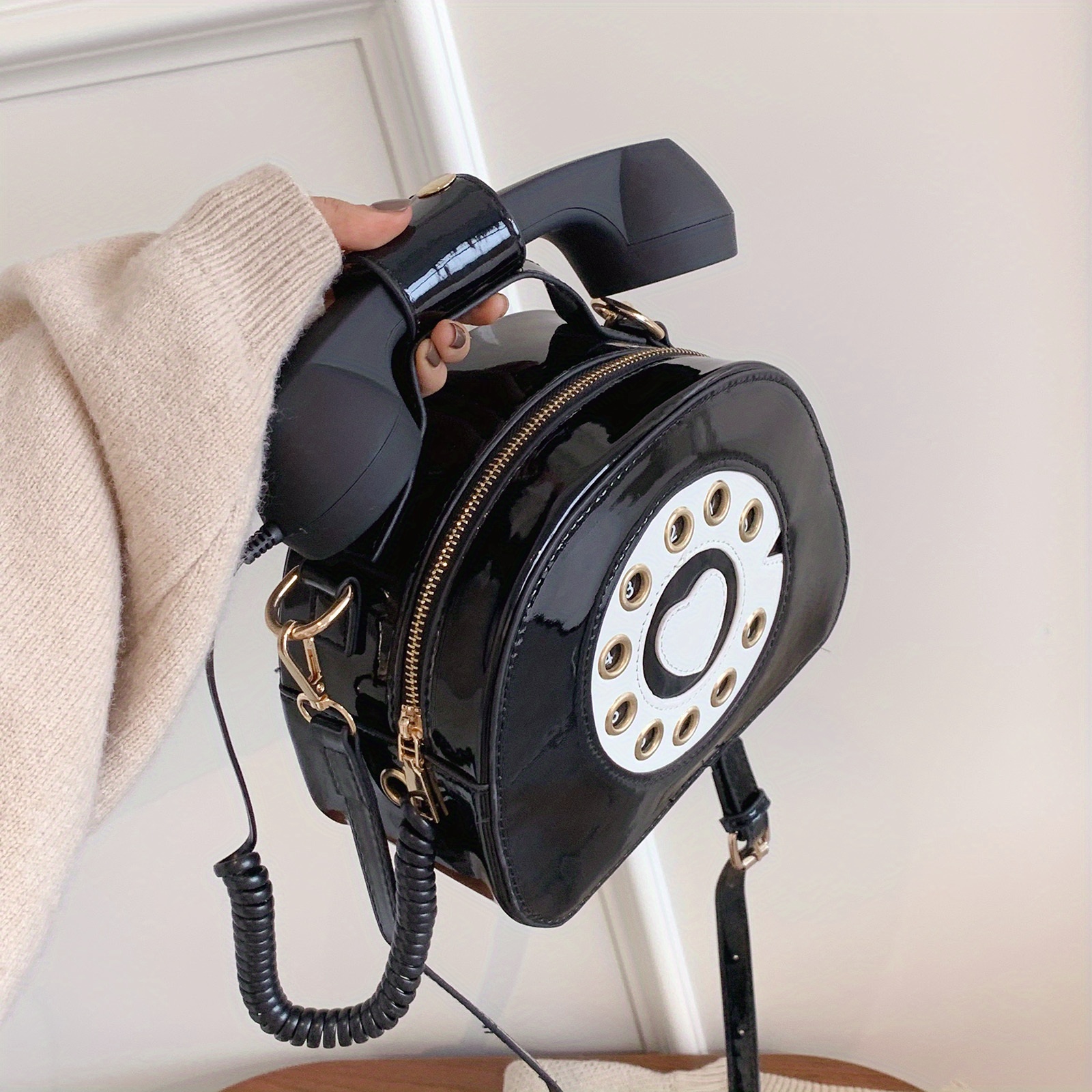電話型 ショルダーバッグ|クリエイティブ PUレザー クロスボディバッグ|個性派 ファスナー付き レディースバッグ
