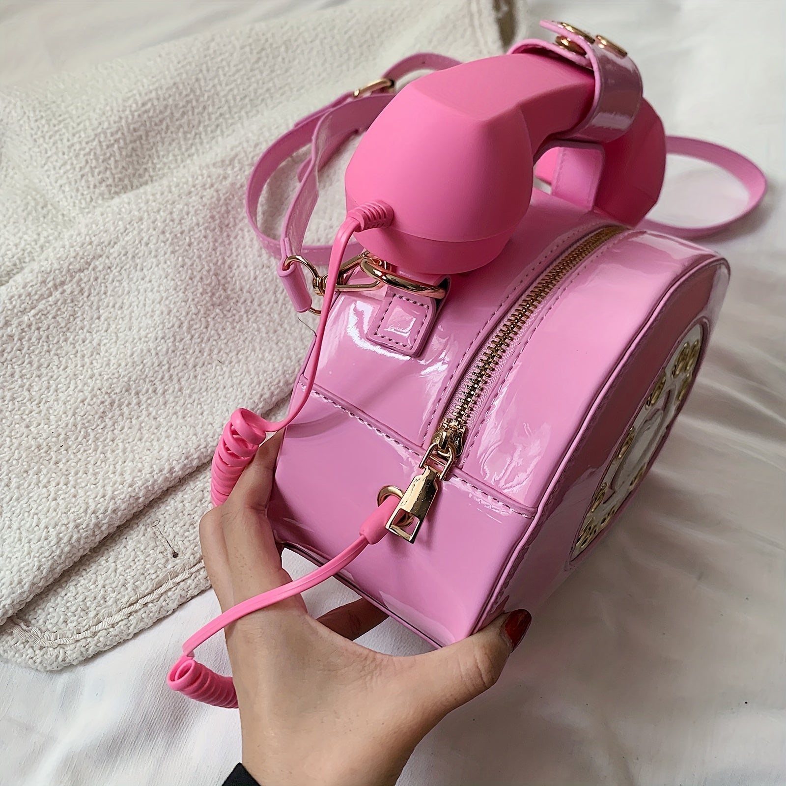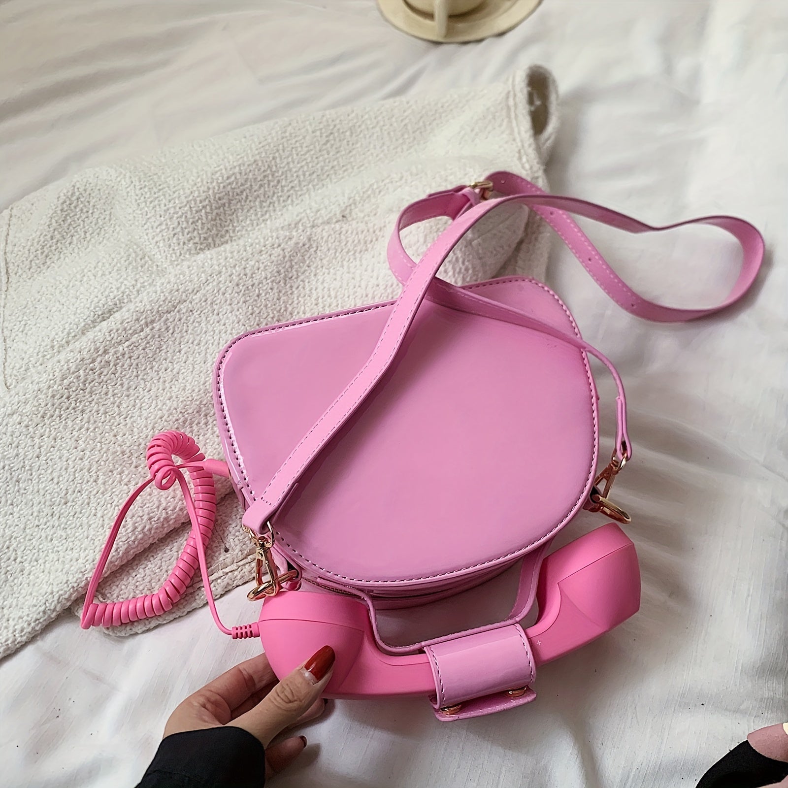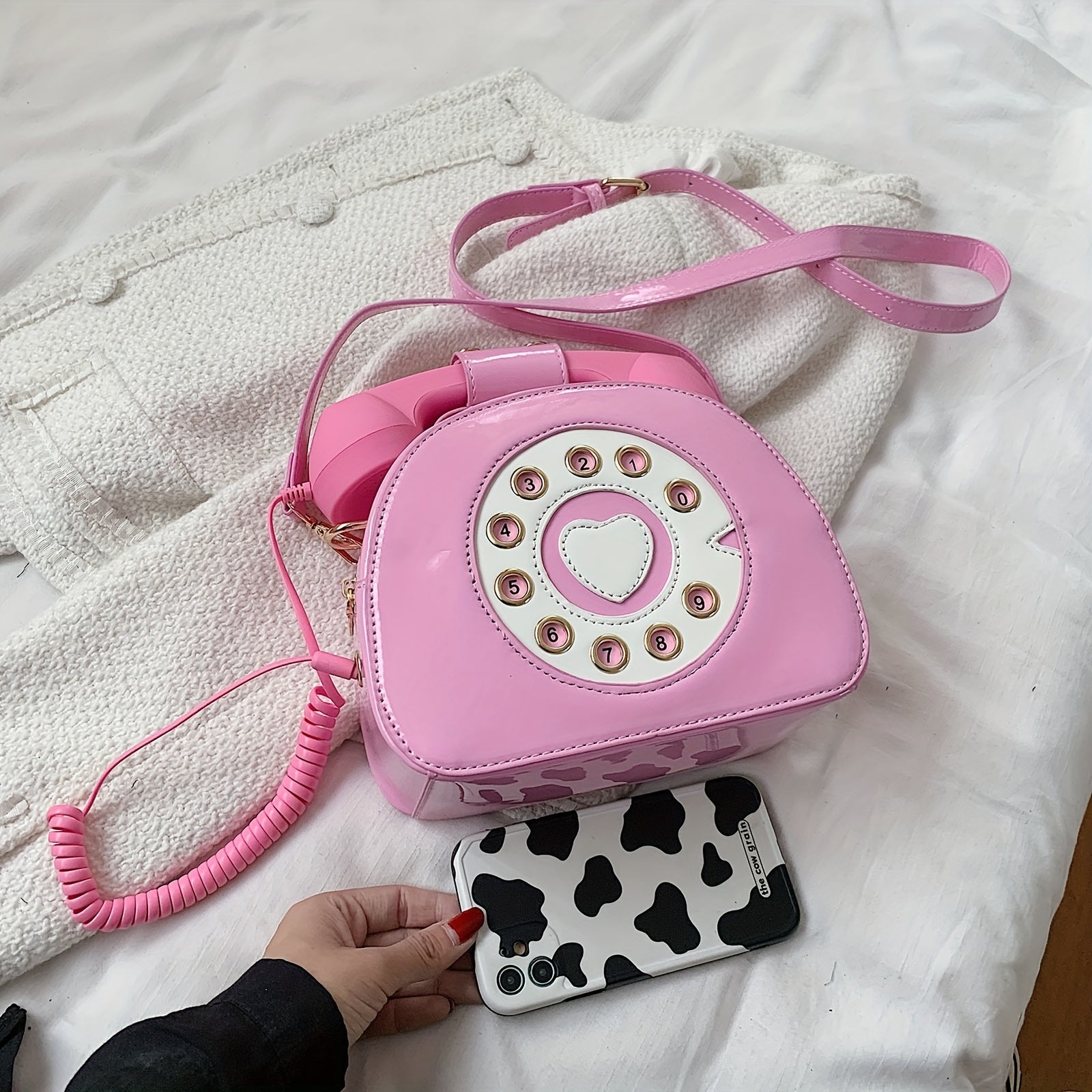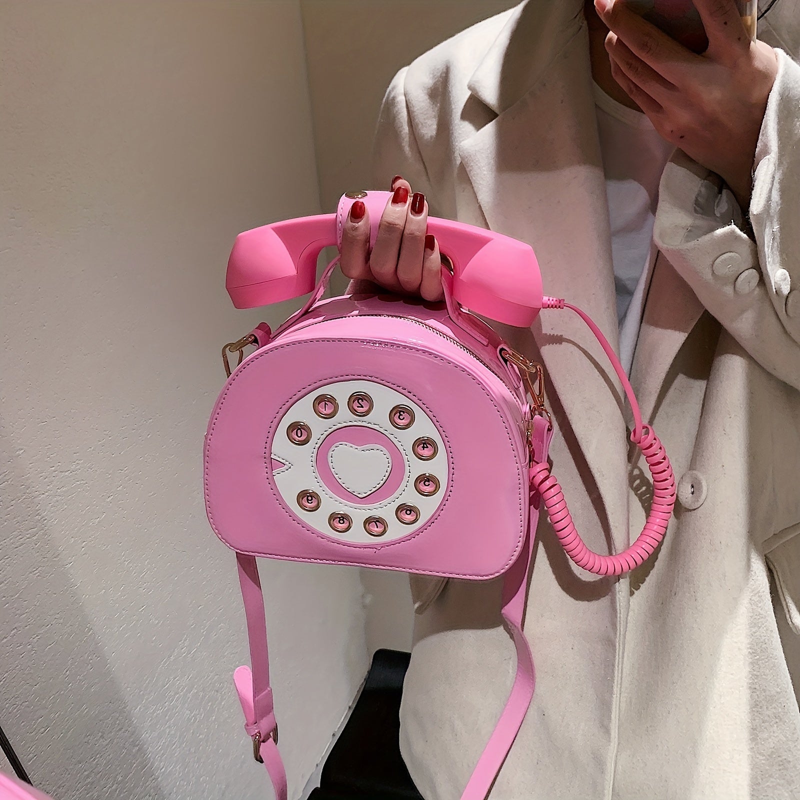 電話型 ショルダーバッグ|クリエイティブ PUレザー クロスボディバッグ|個性派 ファスナー付き レディースバッグ
